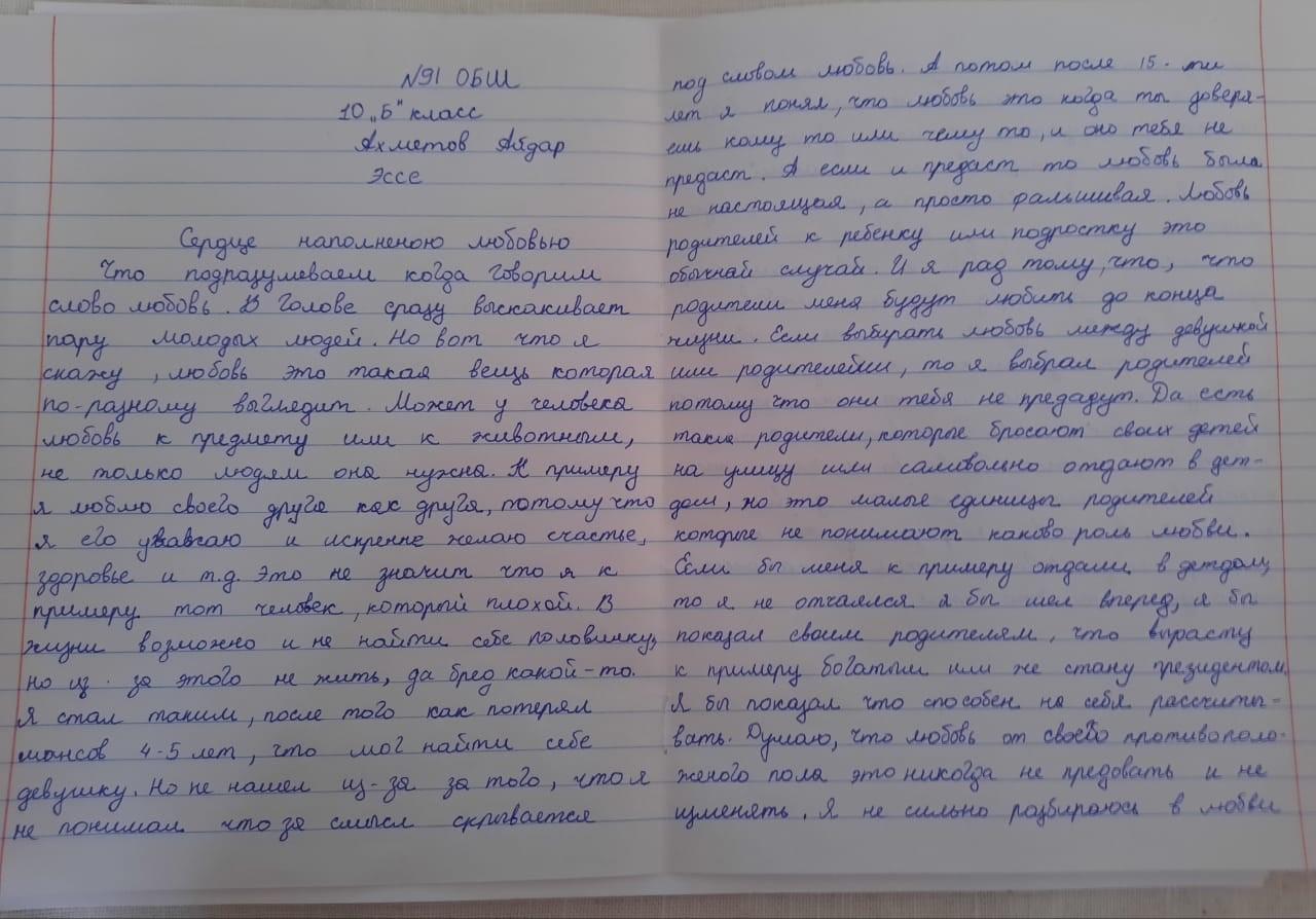 «Алтын жүрек анамыз», «Сердце наполненное любовью» тақырыбында эссе жұмыстары