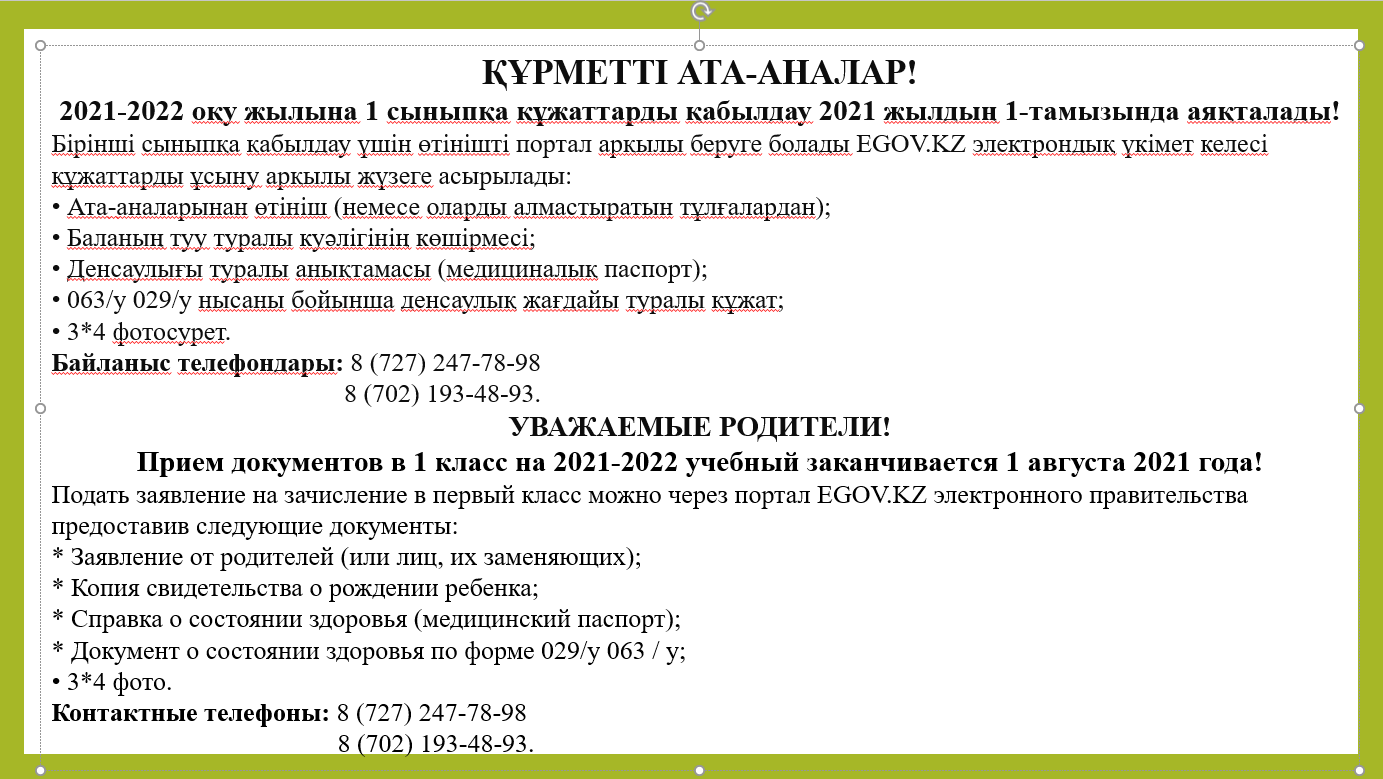 » Ата-аналар назарына! Внимание родителям!