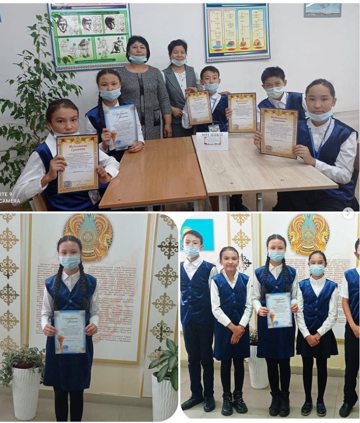 Алматы қаласы Алатау ауданы бойынша өткен “Туған елің - Қазақстанды жақсы білесің бе?” байқауында мектебіміздің 7 “А” сынып оқушысы Саламатова Назым жүлделі 1-орынды иеленді. Жеңісті күндерің көп болсын! Жетекшілері: қазақ тілі мен әдебиеті пәнінің мұғалімі - Индира Джумаковна Тулеуова мен кітапхана меңгерушісі - Раушан Сагындыковна Абдраманова.