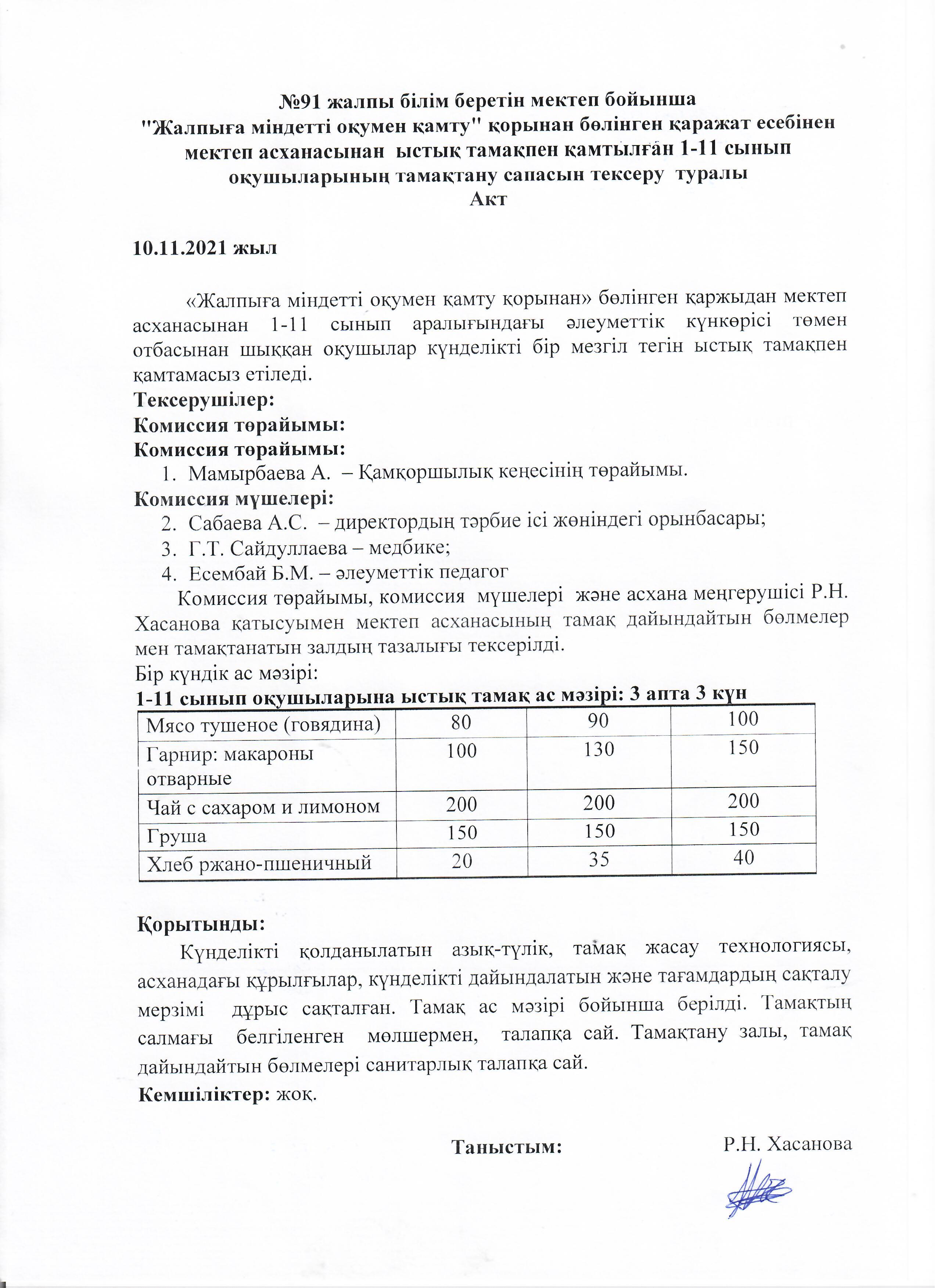 » 10.11.2021 жылғы мектеп асханасын тексерудің №5 актісі