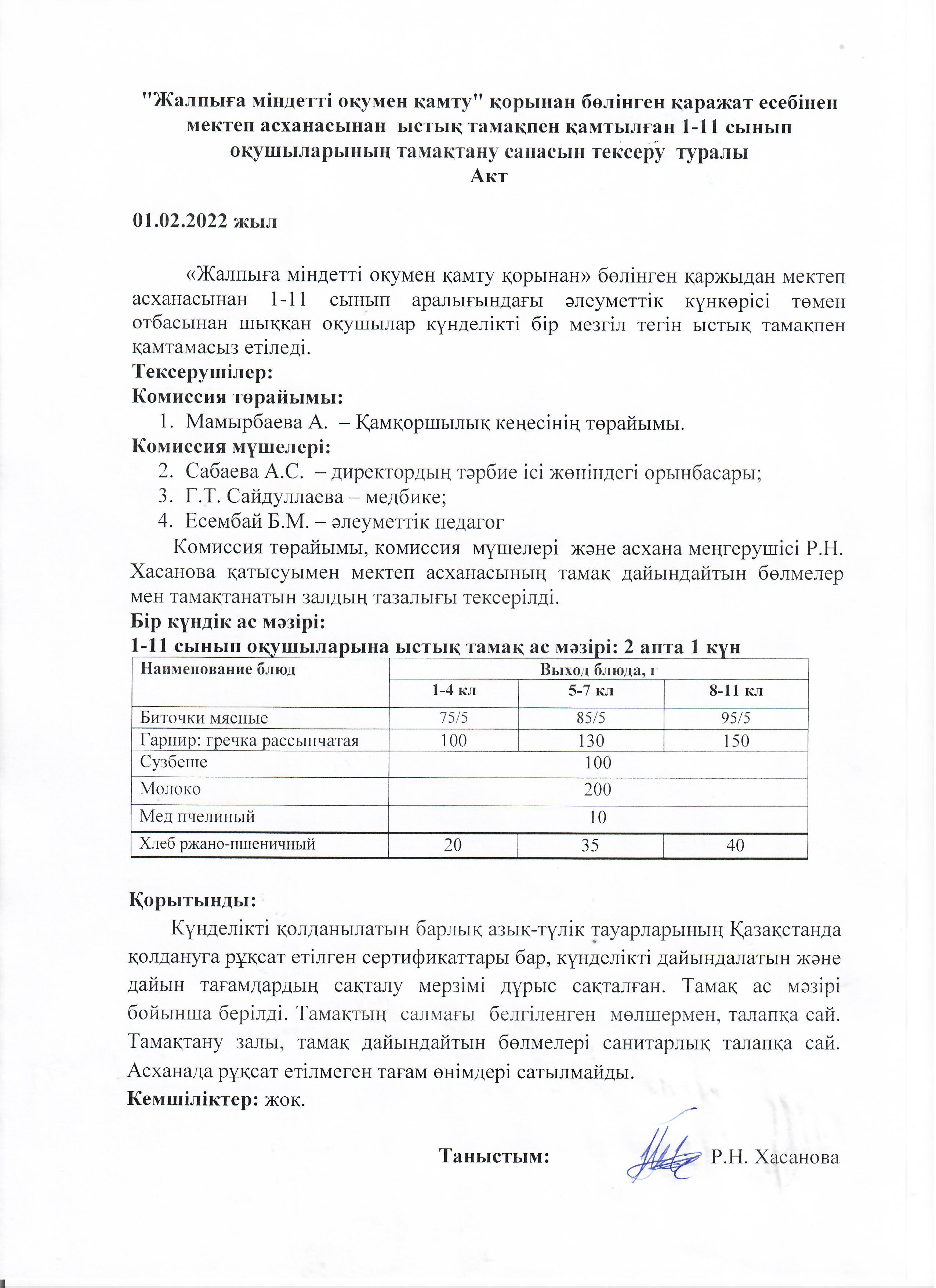 06.09.2021 жылғы мектеп асханасын тексерудің №1 актісі