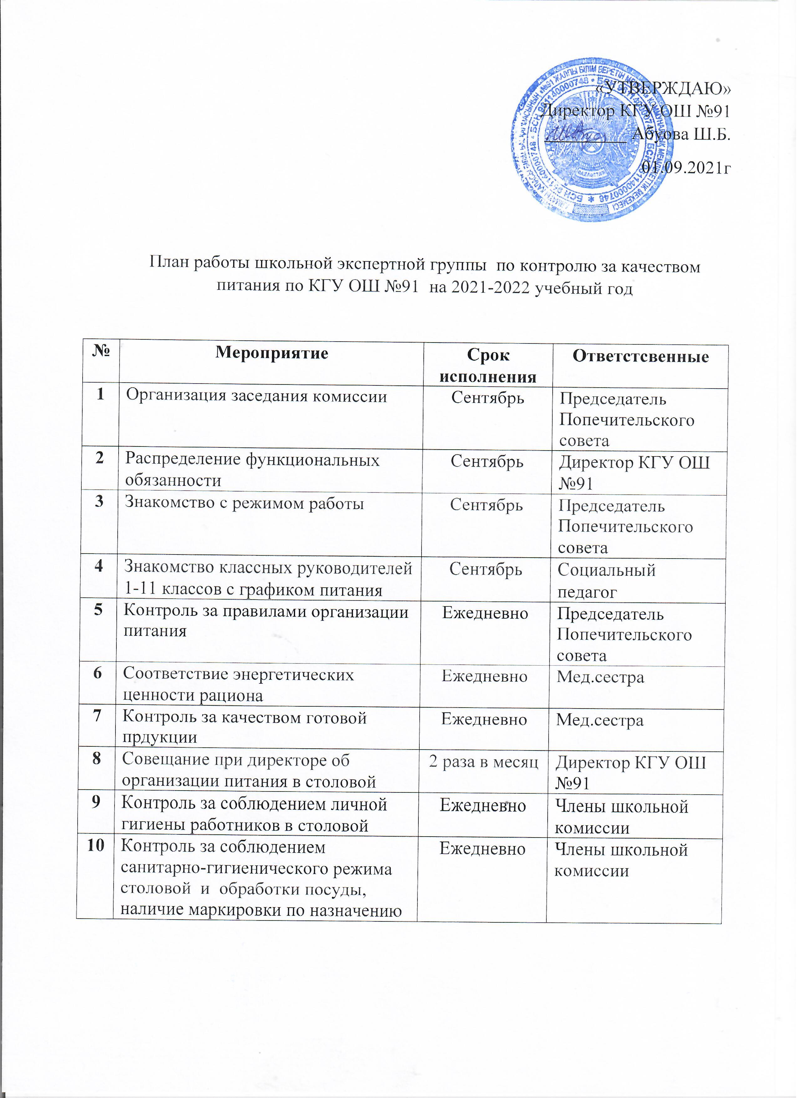 » Бракеражды комиссия мүшелерінің жұмыс жоспары