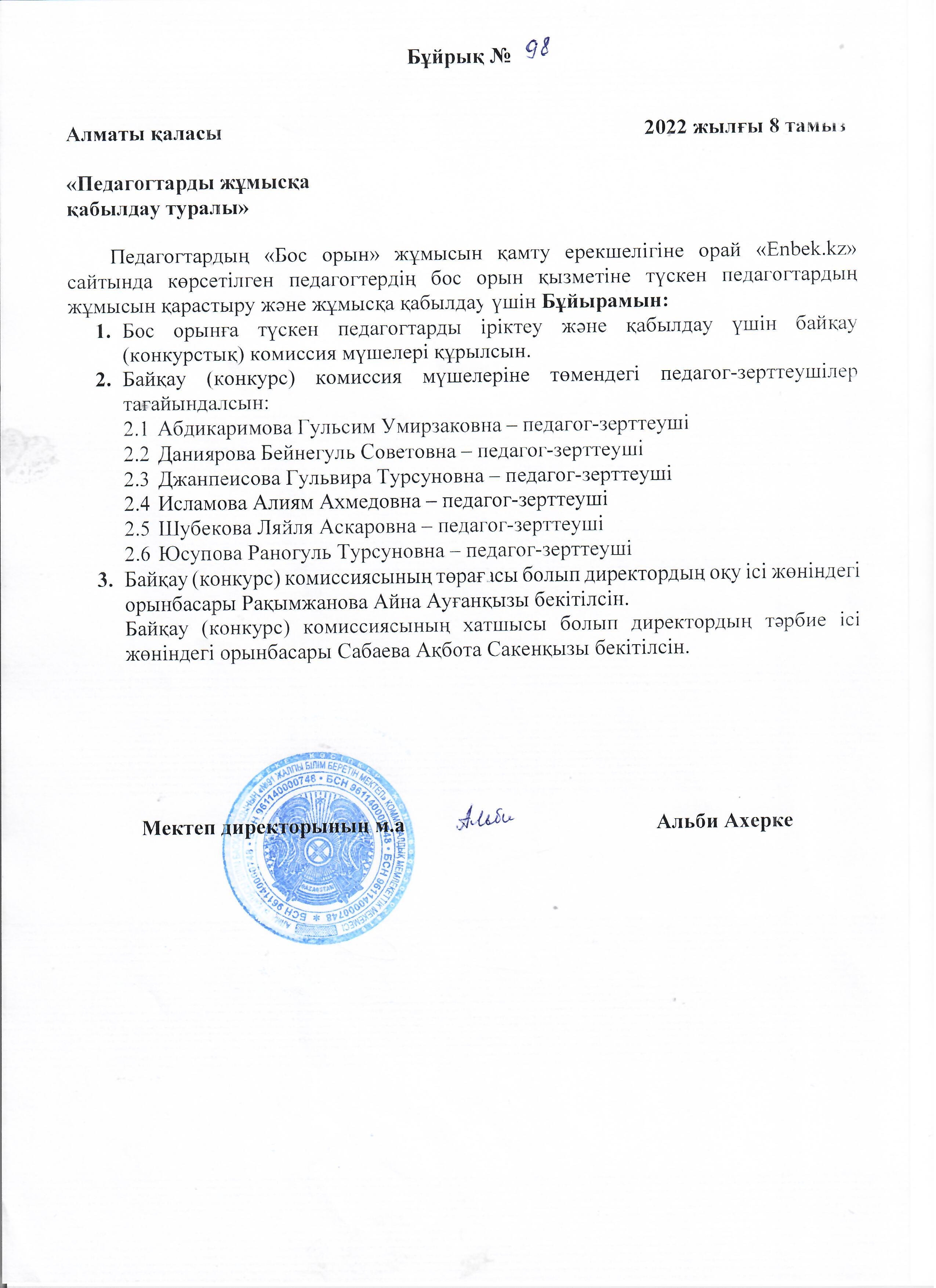 Қабылдау бөлімі: