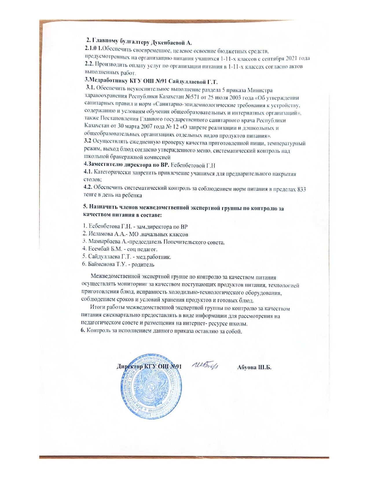01 сентябрь 2022 0 1 2 3 4 5 Тамақтану сапасын бақылау бойынша мектеп сарапшылар тобы Тамақтану сапасын бақылау бойынша мектеп сарапшылар тобын құру туралы бұйрық