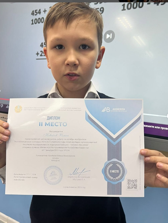 27 ноября 2024 года ученик КГУ ОШ №91 Новиков Роман занял ІІ - место в Республиканском конкурсе «Абай оқулары” организованный творческо-познавательным журналом Акберен - «Akberen Education”. Поздравляем