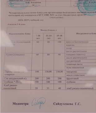 Тағамдар мәзірі 4апта1күн(23.09.24)меню блюд