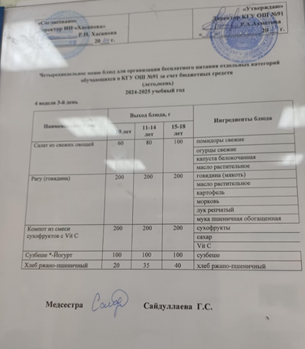 Тағамдану мәзірі 2 апта 4күн(12.09.24) 2неделя 4день