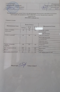 Тағамдар мәзірі 2 апта 1 күн (11.11.2024)