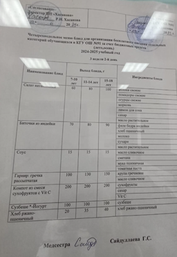 Тағамдар мәзірі 3 апта 2 күн (19.11.2024)