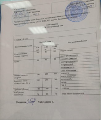 Тағамдар мәзірі. 1 апта 2 күн (05.12.2023). Меню блюд. 1 неделя 2