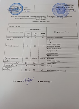 Тағамдар мәзірі 4 апта 1 күн (23.12.24)