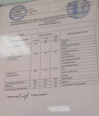 Тағамдар мәзірі 2 апта 5 күн (14.02.2025)
