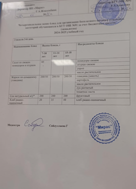 Тағамдар мәзірі 1 апта 4 күн (03.04.2025) Меню блюд.