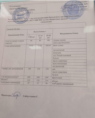 Тағамдар мәзірі 1 апта 4 күн (03.04.2025) Меню блюд.