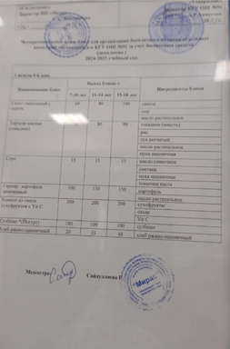 » Тағамдар мәзірі 1 апта 5 күн(02.05.2025). Меню бюлд.