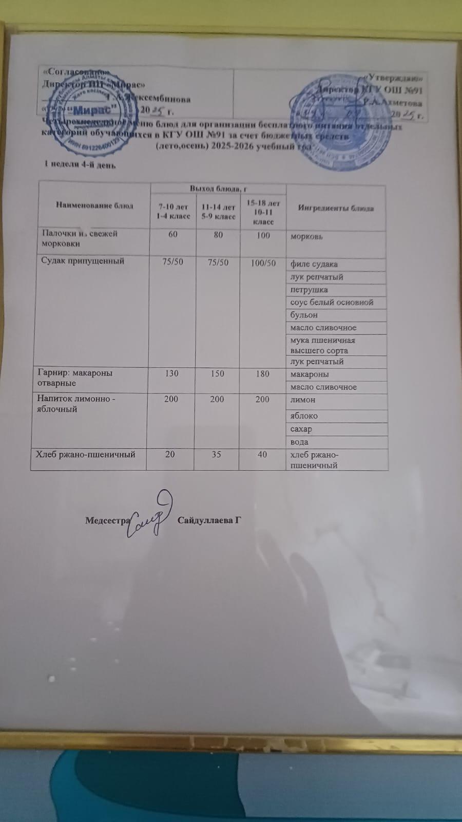 Тағамдар мәзірі 4 апта 3 кун (25.12.2024)