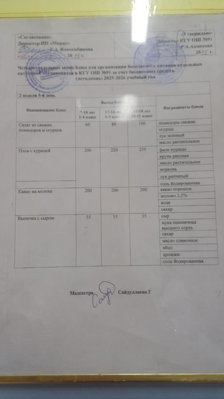 Тағамдар мәзірі 4 апта 3 кун (25.12.2024)